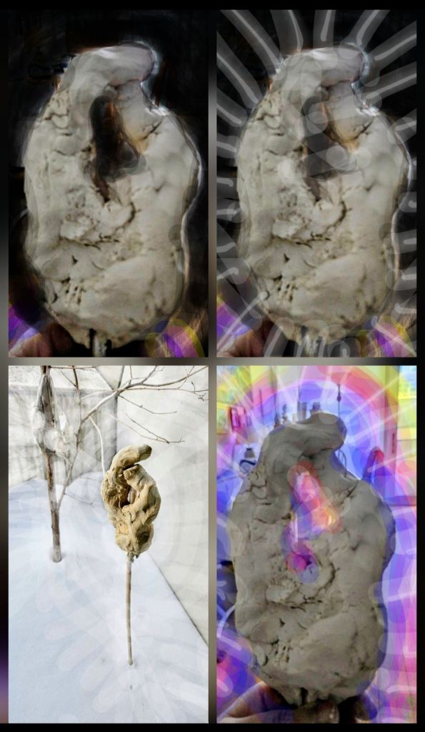 ” Hooking up “. #Sculpture + #Painting. White Clay & Digital palette. 2 Series: ‘Planted X’* . ‘Figurines with Aura’. *Characterized by a long wood stick, crossing their bodies. Coupling despite all- distance, confusion, pain, snow, cold.. Here the figures, which are intrinsically plain matter, adquire human aura alike, through alchemical transformation with Digital Art. #Auraism (c) #XSolé #Multimedia https://www.instagram.com/p/DUYLcyCjlAh/?igsh=MTg2dTB4b3IxZ2ZrZg==